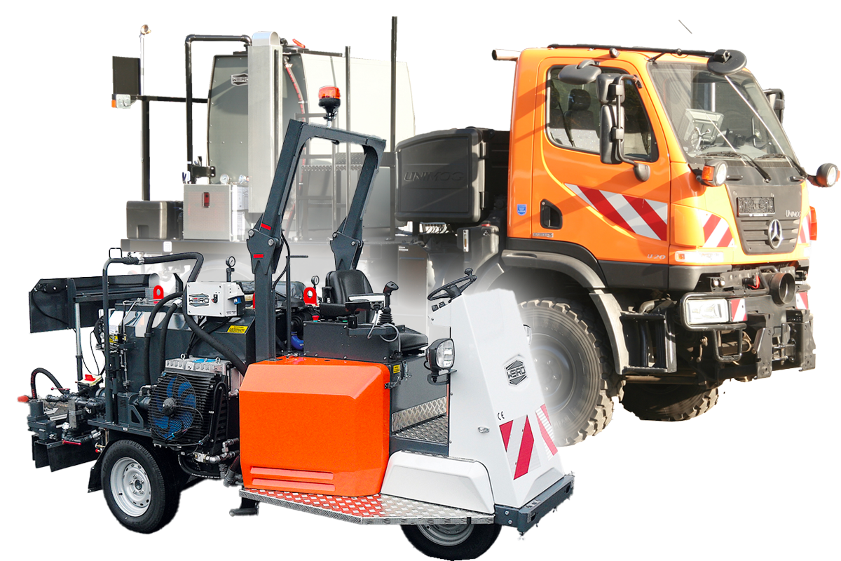 Selbstfahrende, Aufsatz- oder Anhängerspritzmaschinen zur Herstellung des Schichtenverbundes.