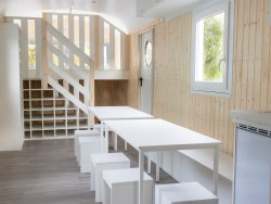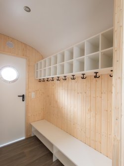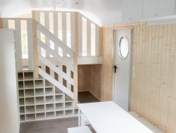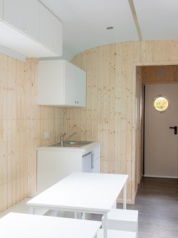 This rolling forest kindergarten some also has some special details inside: You enter the trailer through a windbreak.